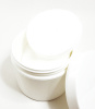 Packaging: 40 pre-moistened pads | 4 oz. White, opaque plastic jar with seal and lid.